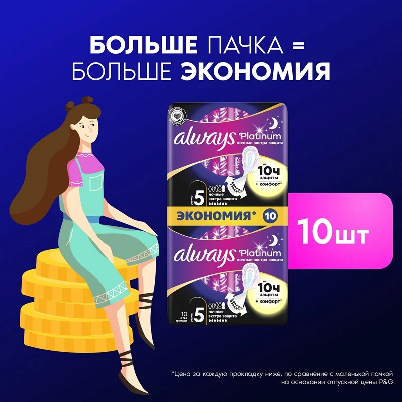 Прокладки гигиенические Always Ultra Platinum Night, 10шт