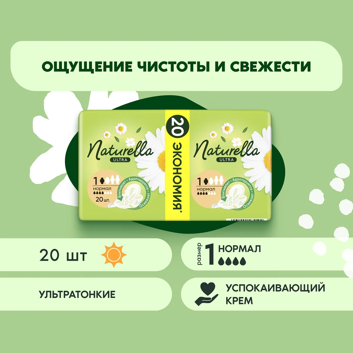 Прокладки женские гигиенические NATURELLA Ultra Normal Duo 20шт Прокладки Naturella Camomile Ultra Normal Duo с ромашкой (20 штук). Ароматизированные женские гигиенические прокладки с крылышками. Это особые прокладки, содержащие нежный крем-бальзам с ромашкой, который помогает тебе защитить самую деликатную кожу от раздражений. Мягкие крылышки служат для защиты от протеканий по бокам и для фиксации прокладки на белье. Каждая прокладка находится в отдельной герметичной упаковке - их удобно и гигиенично носить с собой. Впитывающий слой Naturella содержит волокна натурального происхождения, а верхний слой прокладок очень мягкий и приятный для кожи. У прокладок есть особые желобки в форме цветка, которые помогают впитывать влагу. Длина прокладки: 176 мм. Хранить в сухом месте. Срок годности 2 года.