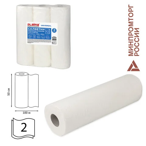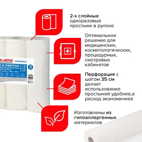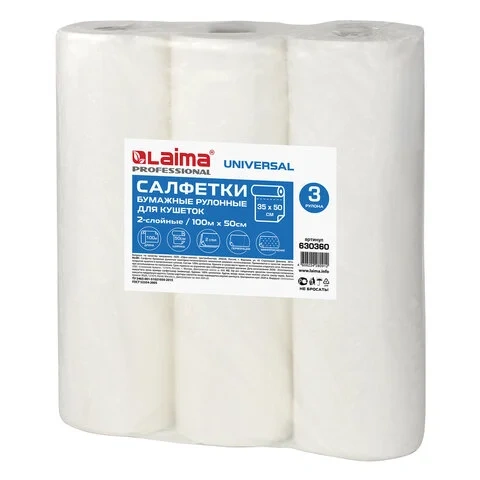 Бумажные простыни Laima 50см х100м, 2 слоя, 3шт/уп