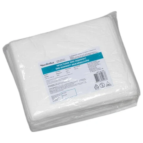 Простыни в пачке одноразовые Чистовье нестерильные 80х200см, 18г/м2, 20шт, белые, SMS, в сложении