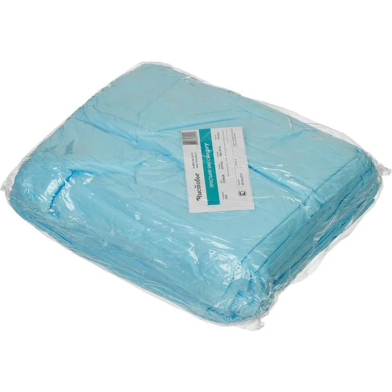 Простыня одноразовая Чистовье Стандарт нестерильная в сложении 200×160 см голубая (20 штук в упаковке)