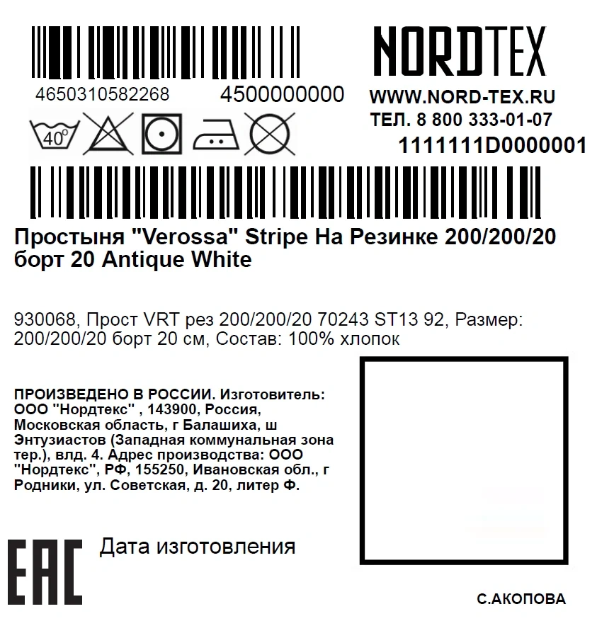 Простыня Verossa Antique White на резинке страйп-сатин, 200 x 200см