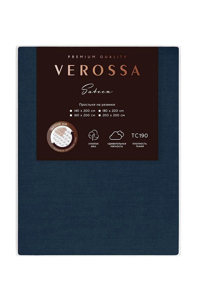 Простыня Verossa темно-синяя сатин на резинке, 180 x 200см
