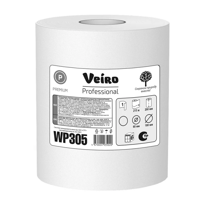 Протирочная бумага Veiro Professional WP305 в рулоне, 215м, 1 слой, белая