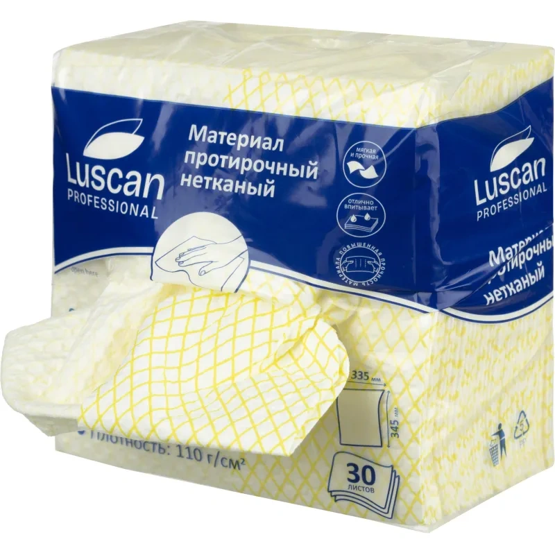 Материал протирочный нетканый Luscan Prof желтый 110г 33,5х34,5см 30л/уп