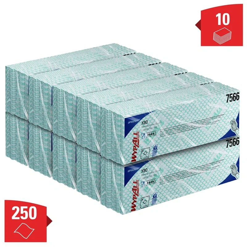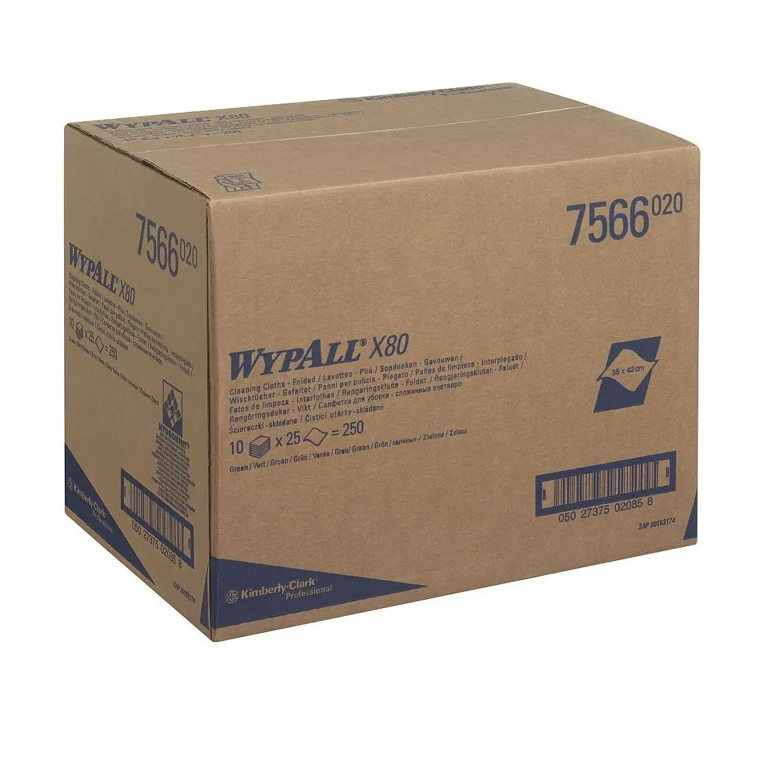 Протирочные салфетки Kimberly-Clark WypAll Х80 7566, листовые, 25шт, 1 слой, зеленые