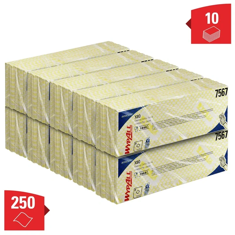 Протирочные салфетки Kimberly-Clark WypAll Х80 7567, листовые, 25шт, 1 слой, желтые