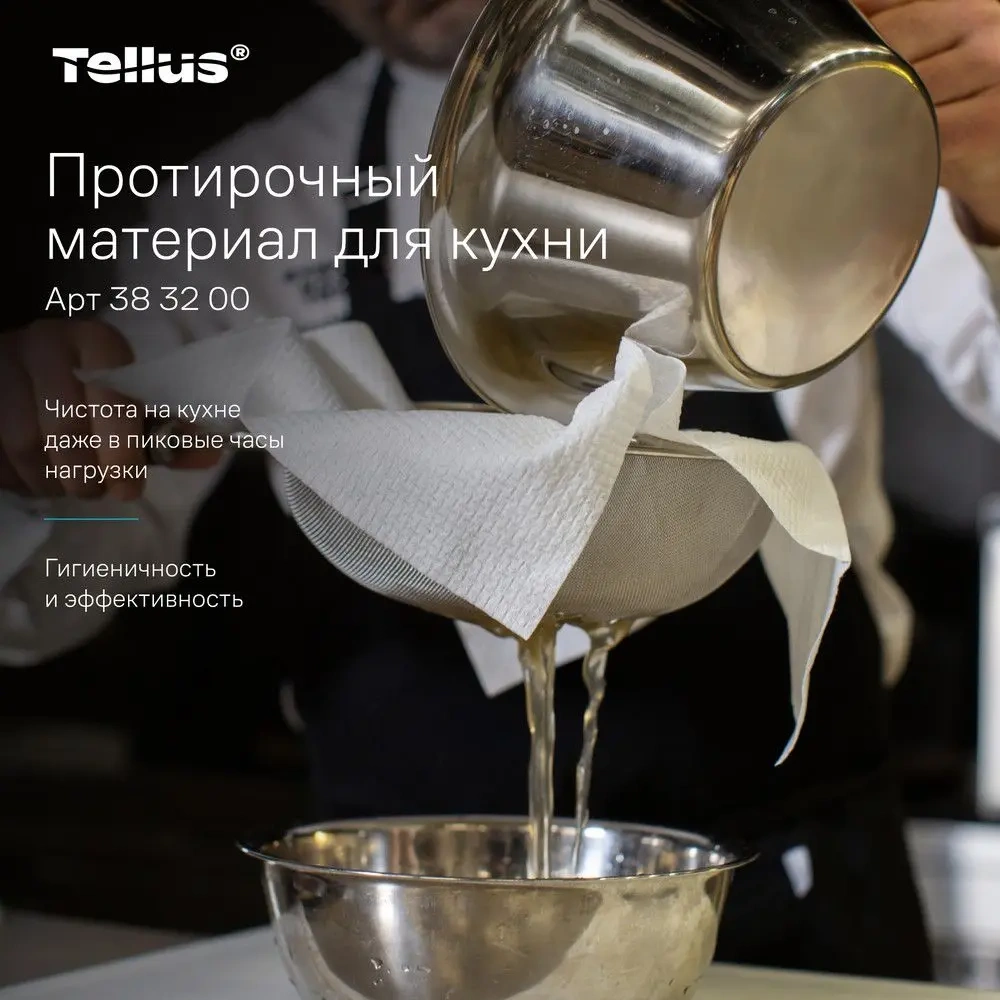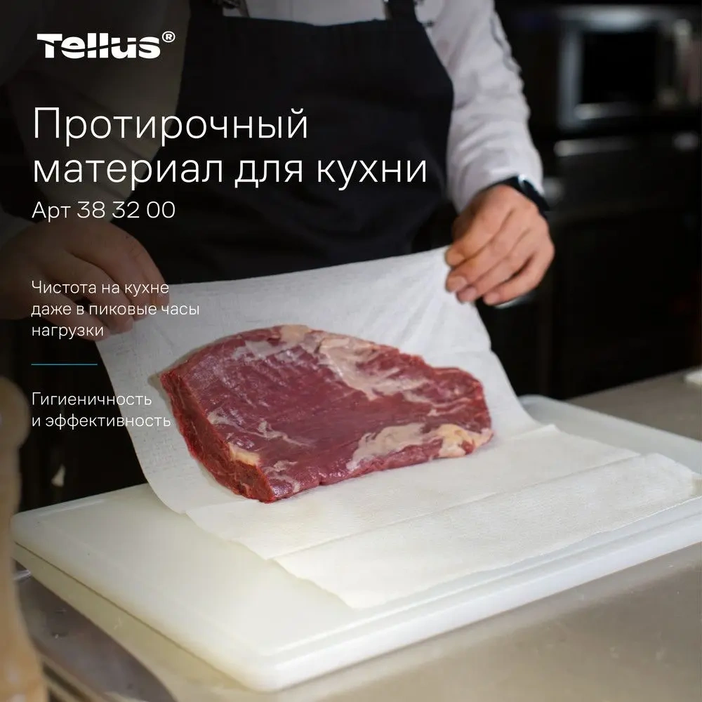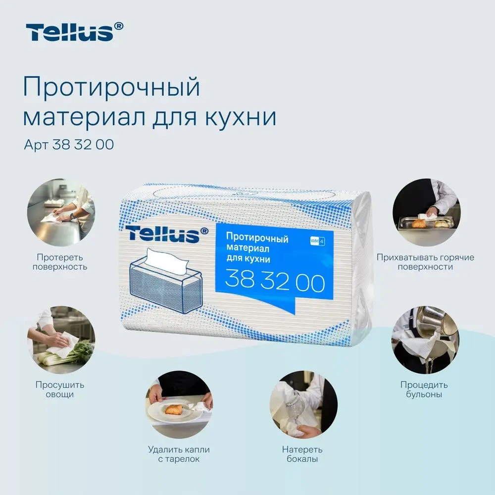 Протирочный материал поддерживайте чистоту на кухне даже в пиковые часы нагрузки с протирочным материалом Tellus. Его плотная текстура способна впитывать в два раза больше* воды, что позволяет эффективно справляться с универсальными задачами.