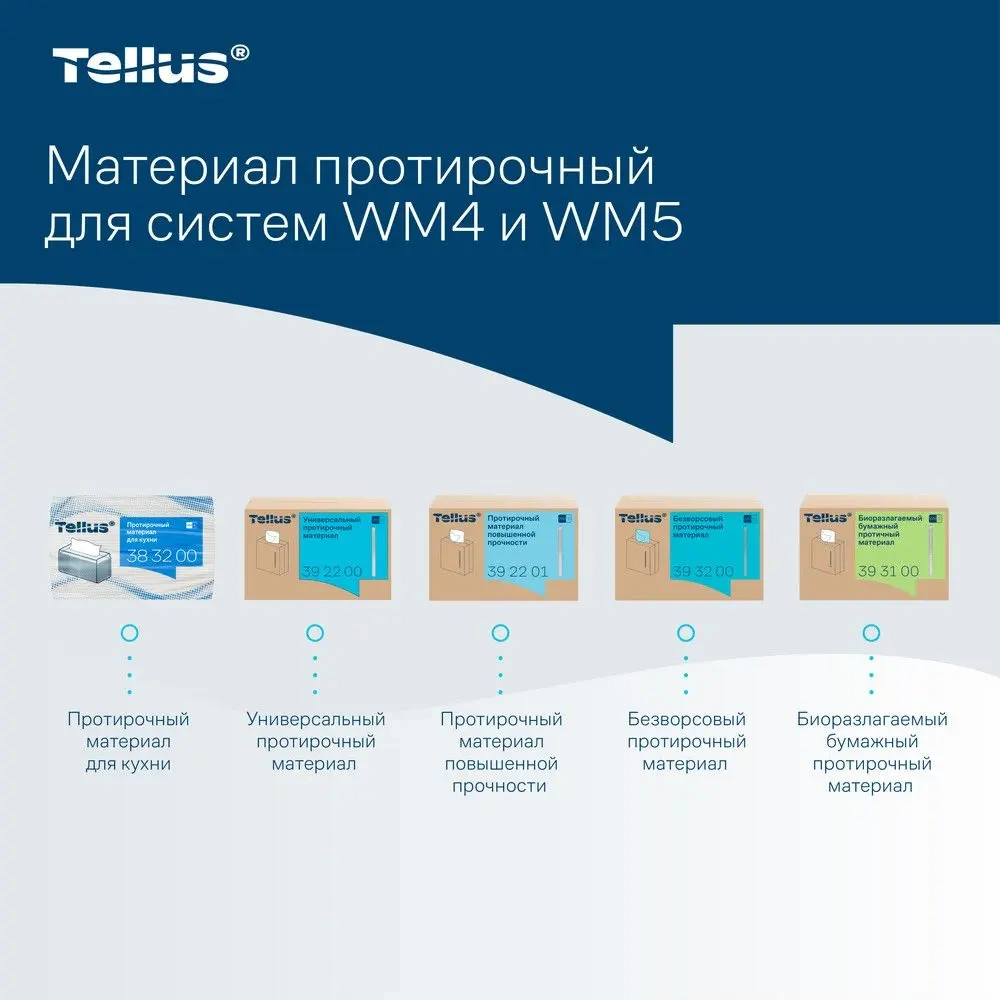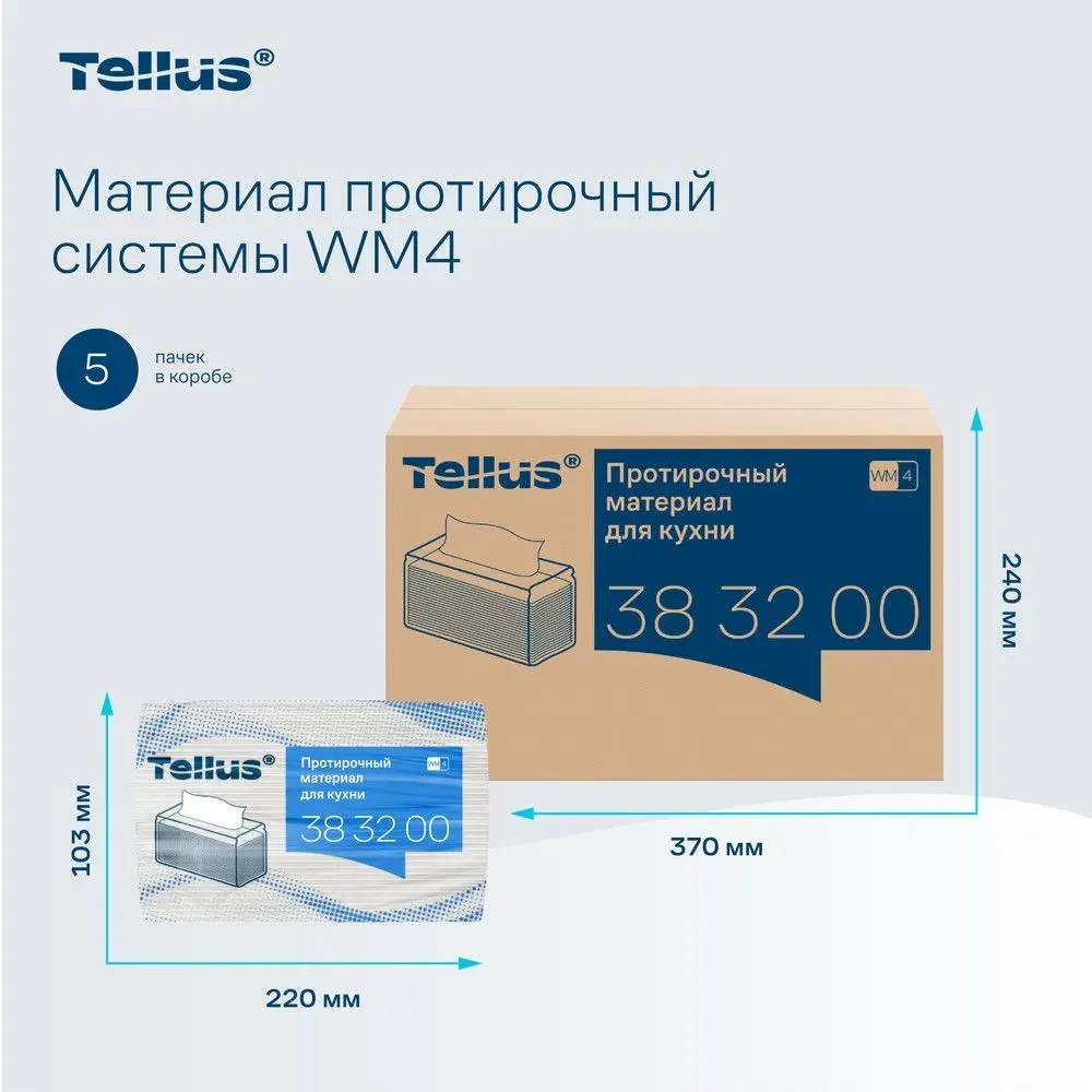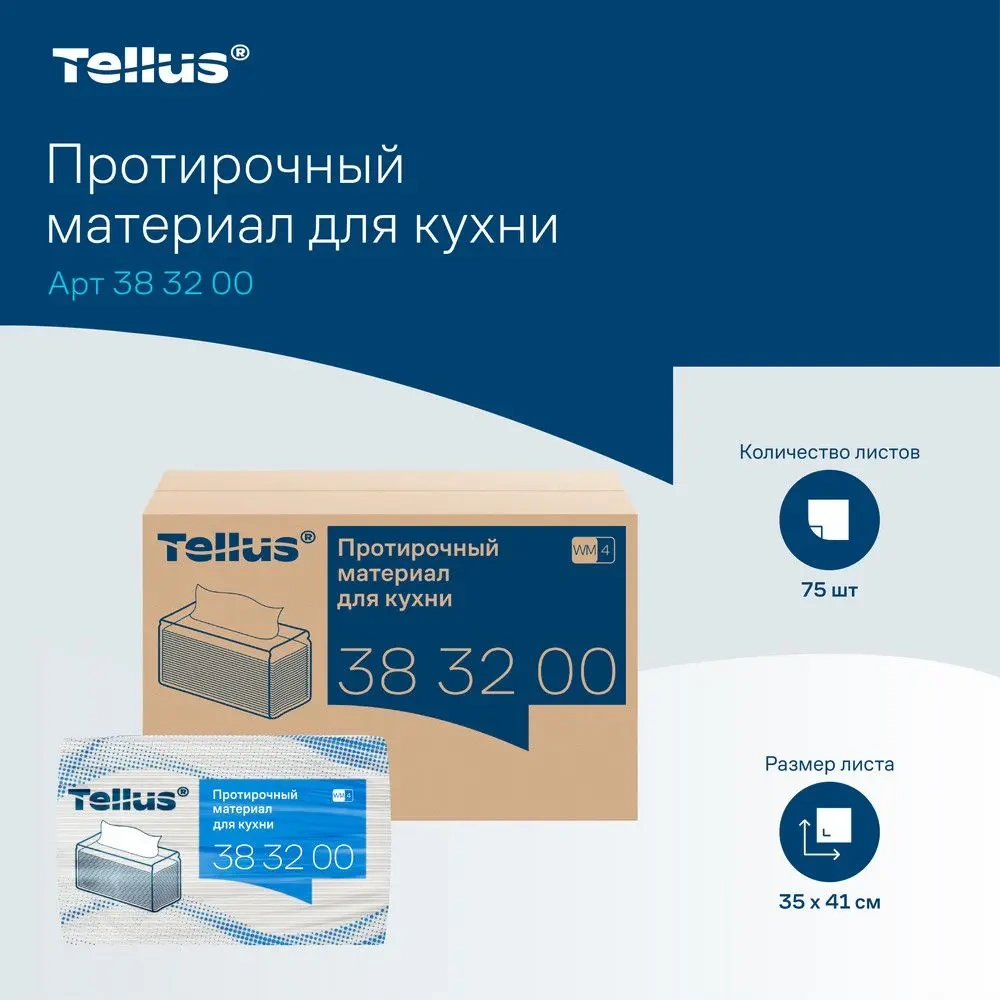 Протирочные салфетки Tellus (tork) Премиум WM4 383200, 1 слой, белые, 75шт, 35х41см