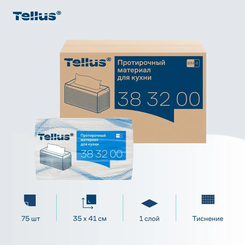 Отзывы о «Протирочные салфетки Tellus (tork) Премиум WM4 383200, 1 слой, белые, 75шт, 35х41см»