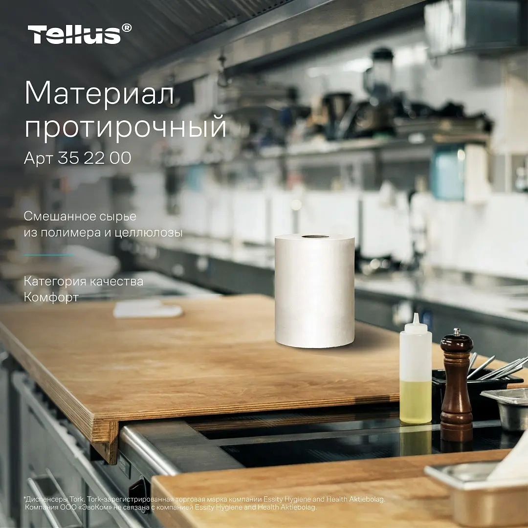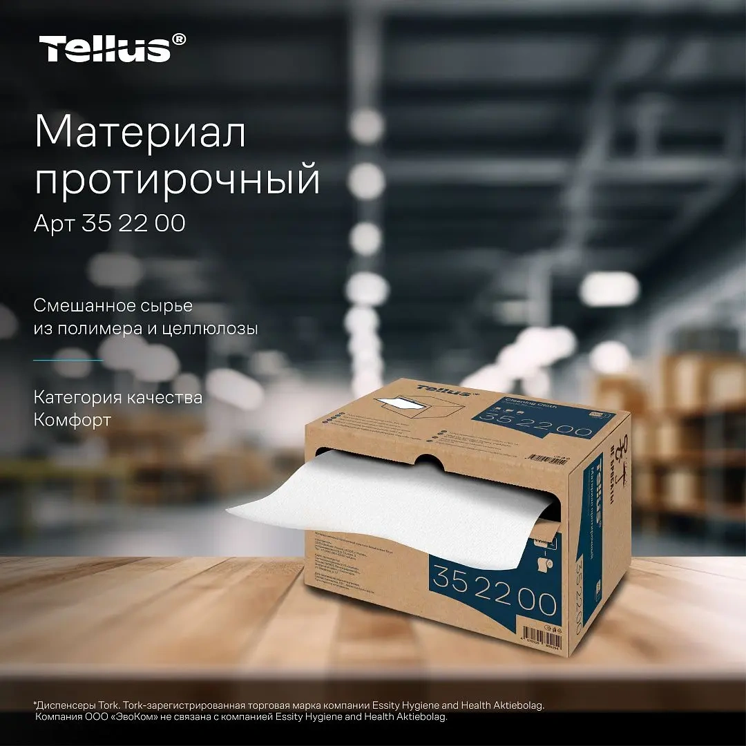 Протирочные салфетки Tellus (tork) Advanced 352200, 1 слой, белые, 380шт,105м, рулон