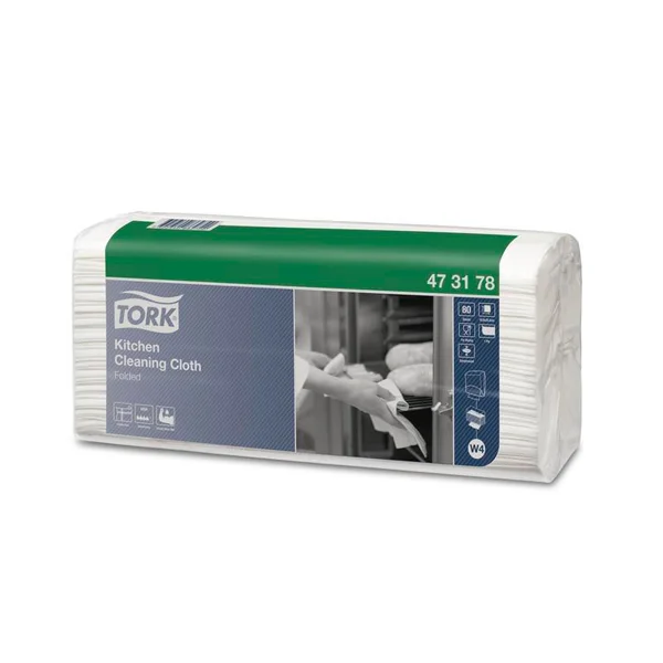 Нетканый протирочный материал в салфетках Tork W4 1-слойный. Цвет: белый, размер листа: 35,5х42,8 см, 80 листов в упаковке. Нетканый материал Tork для кухни отлично впитывает влагу и сохраняет прочность даже во влажном состоянии, благодаря чему является отличным заменителем традиционных полотенец. Объемный нетканый материал, схож по свойствам с вафельным хлопковым полотенцем.