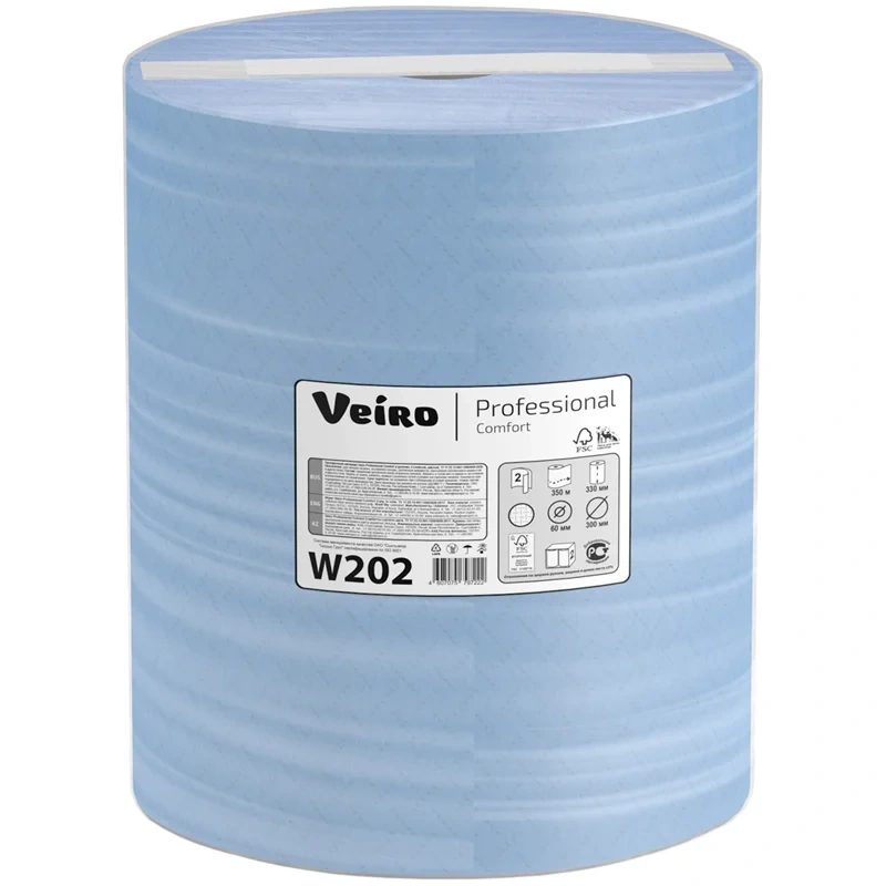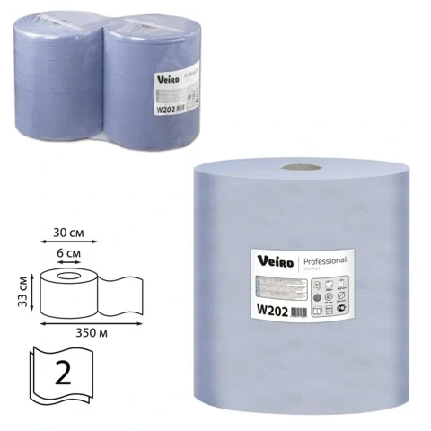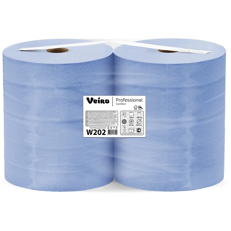 Протирочная бумага Veiro Professional Comfort W202, в рулоне, 350м, 2 слоя, синяя, 2шт
