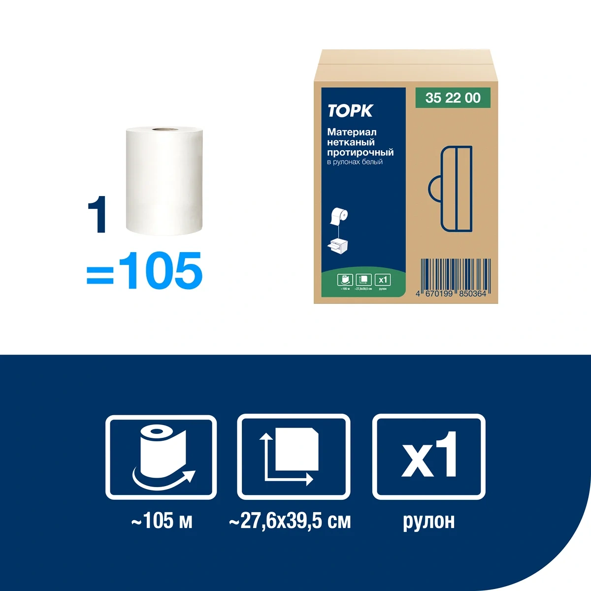 Протирочные салфетки Tellus (tork) Advanced 352200, 1 слой, белые, 380шт,105м, рулон