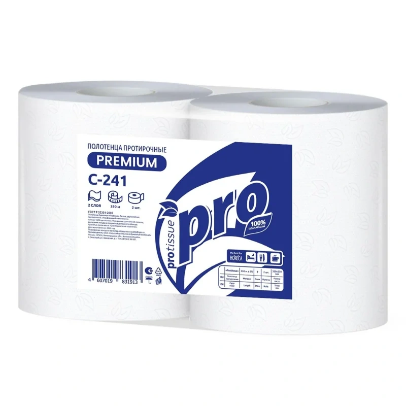 Протирочные салфетки Protissue С241 в рулоне, белые, 350м, 2 слоя, 35х35см