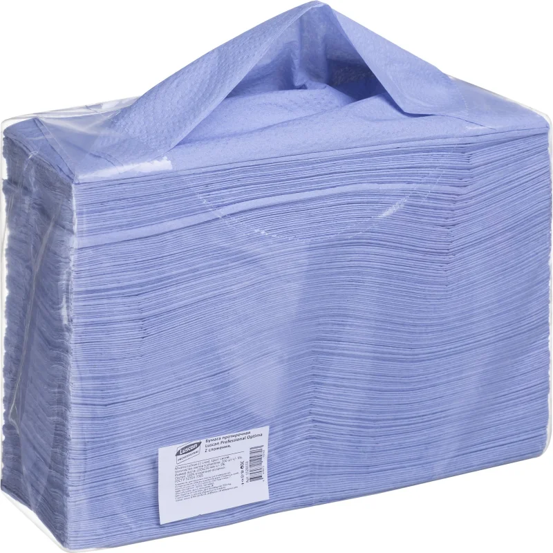 Протирочные салфетки Luscan Professional Optima листовые, 200шт, 2 слоя, голубые