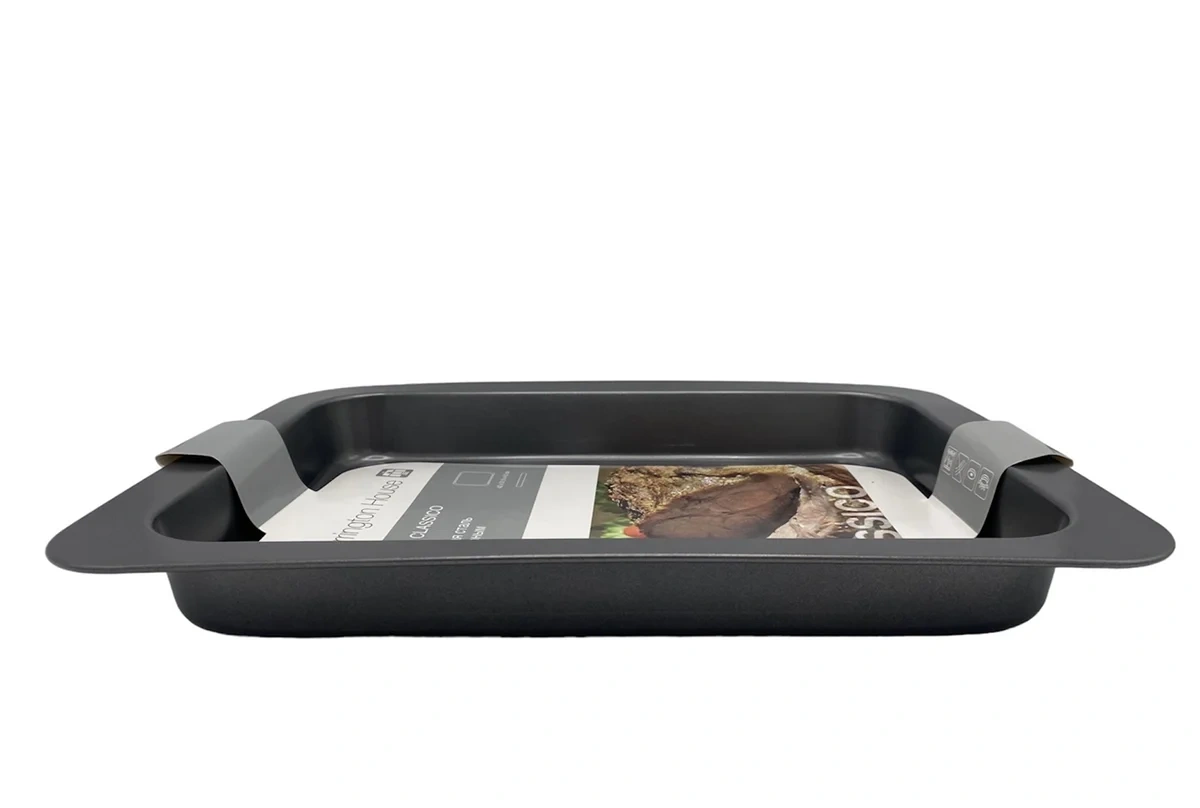 Tarrington House Противень, 42 х 31.5 см изготовлен из высококачественной углеродистой стали с антипригарным покрытием, благодаря чему продукты не пригорают и не прилипают к стенкам посуды. Антипригарное покрытие также обеспечивает легкость мытья. Стальные стенки посуды быстро распределяют тепло, благодаря чему продукты запекаются равномерно. Для чистки нельзя использовать абразивные чистящие средства и жесткие губки. Максимальная температура нагрева не выше 250C.