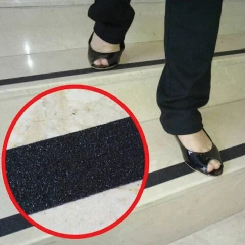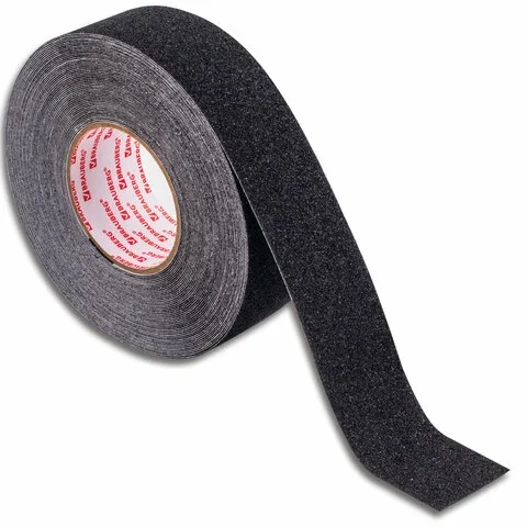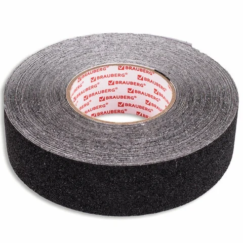 Клейкая ПРОТИВОСКОЛЬЗЯЩАЯ зернистая лента 25 мм х 5 м, ЧЕРНАЯ, основа ПВХ, BRAUBERG, 606772