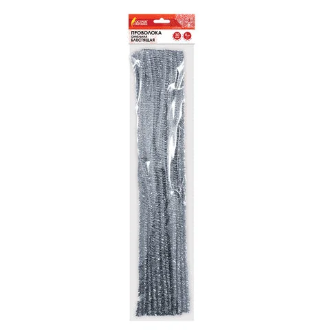 Проволока синельная для творчества 'Блестящая', серебряная, 30 шт., 0,6х30 см, ОСТРОВ СОКРОВИЩ, 6615