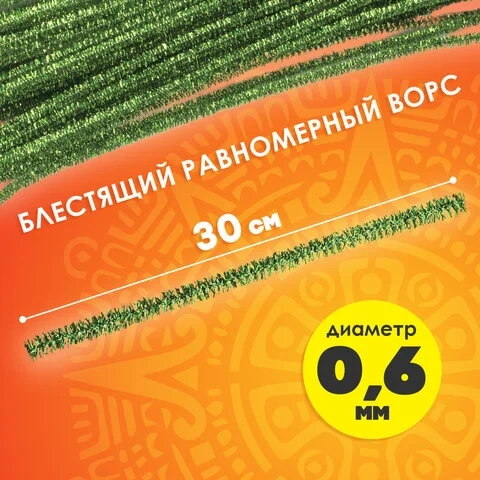 Проволока синельная для творчества 'Блестящая', зеленая, 30 шт., 0,6х30 см, ОСТРОВ СОКРОВИЩ, 661542
