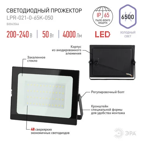 Прожектор светодиодный Эра LPR-023-0-65K-050 50 (415) Вт, 6500К, 4000Лм, IP65, черный
