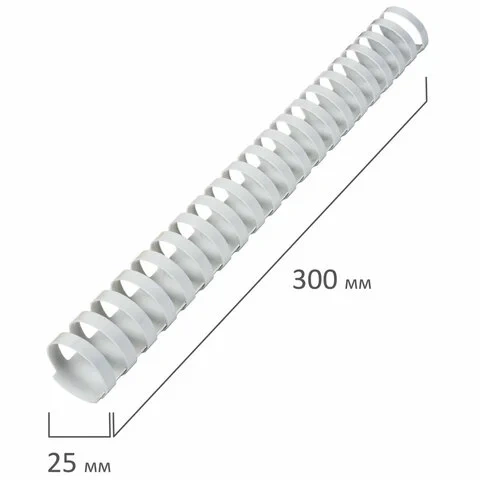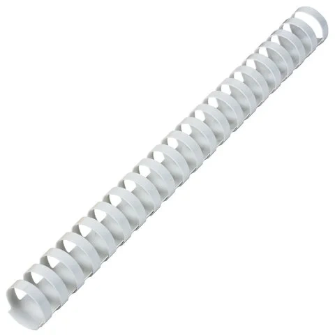 Рекомендуется использовать для переплета документов объемом от 181 до 200 листов. Изготовлена из высококачественного пластика белого цвета. Состоит из 21 кольца диаметром 25 мм. В упаковке 50 штук.