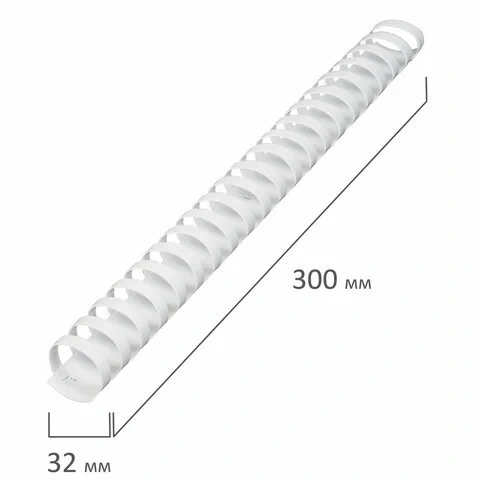 Рекомендуется использовать для переплета документов объемом от 241 до 280 листов. Изготовлена из высококачественного пластика белого цвета. Состоит из 21 кольца диаметром 32 мм. В упаковке 50 штук.