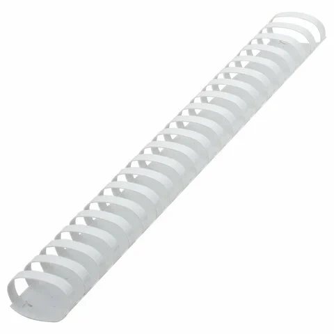 Рекомендуется использовать для переплета документов объемом от 281 до 340 листов. Изготовлена из высококачественного пластика белого цвета. Состоит из 21 кольца диаметром 38 мм. В упаковке 50 штук.
