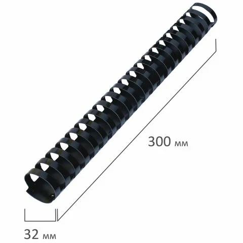 Рекомендуется использовать для переплета документов объемом от 241 до 280 листов. Изготовлена из высококачественного пластика чёрного цвета. Состоит из 21 кольца диаметром 32 мм. В упаковке 50 штук.