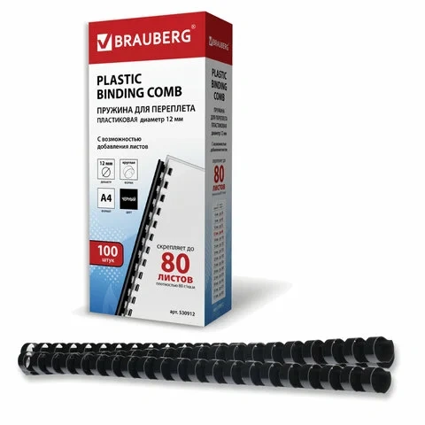 Пружины для переплета пластиковые Brauberg черные, на 56-80 листов, 12мм, 100шт, кольцо