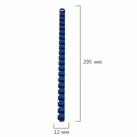Рекомендуется использовать для переплета документов объемом от 56 до 80 листов. Изготовлена из высококачественного пластика синего цвета. Состоит из 21 кольца диаметром 12 мм. В упаковке 100 штук.