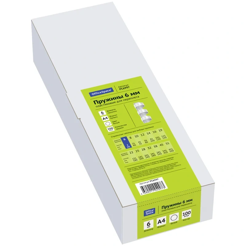 Пружины для переплета пластиковые Officespace белые, на 2-20 листов, 6мм, 100шт, кольцо