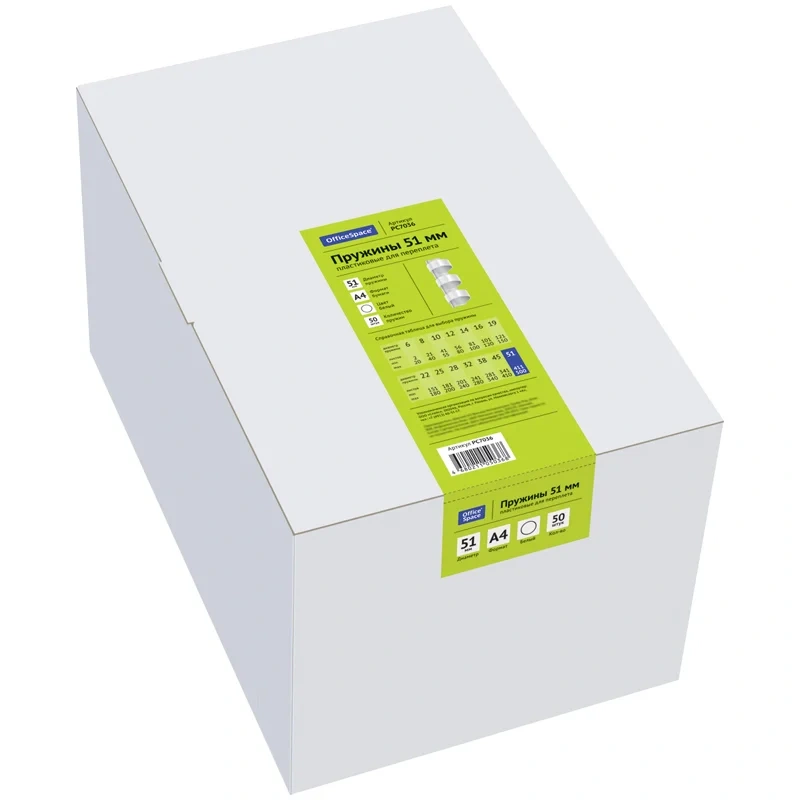Пружины для переплета пластиковые Officespace белые, на 411-500 листов, 51мм, 50шт