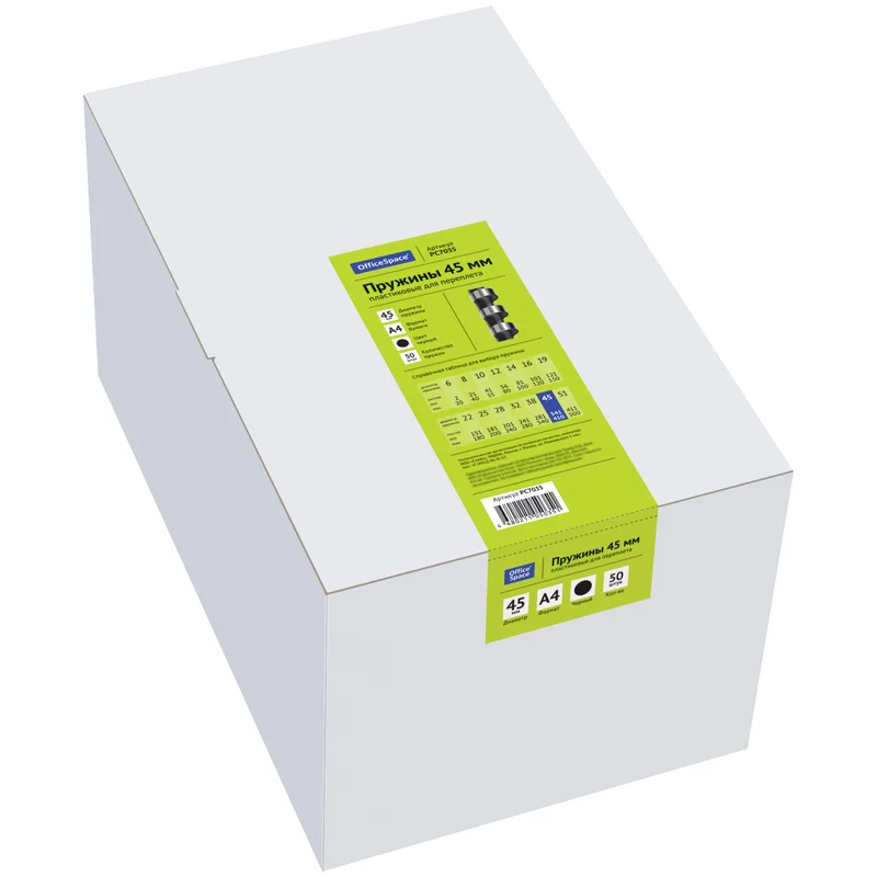 Пружины для переплета пластиковые Officespace черные, на 341-410 листов, 45мм, 50шт