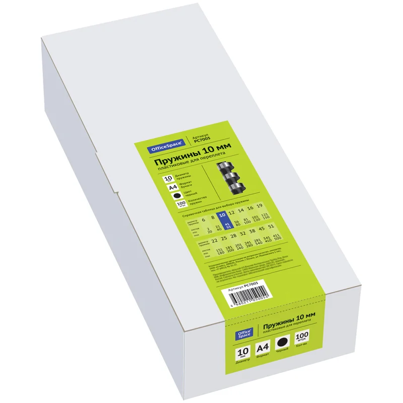 Пружины для переплета пластиковые Officespace черные, на 41-55 листов, 10мм, 100шт, кольцо