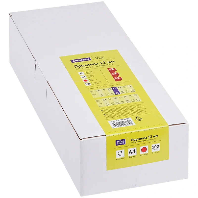 Пластиковые пружины OfficeSpace белого цвета диаметром 12мм предназначены для переплета документов. Легко выдерживают многократное раскрытие при необходимости добавить или удалить листы из готовой брошюры. Рекомендуемый объем брошюры при использовании данного диаметра пружины: 56-80 листов.