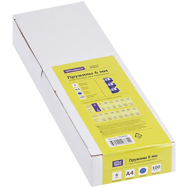 Пружины для переплета пластиковые Officespace синие, до 20 листов, 6мм