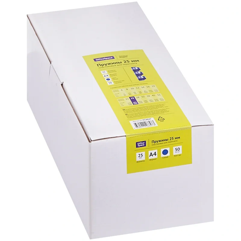 Пружины для переплета пластиковые Officespace синие, до 200 листов, 25мм