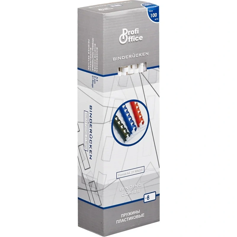 Пружины для переплета пластиковые ProfiOffice 8 мм белые (100 штук в упаковке). Предназначены для подготовки брошюр при помощи брошюровщика для переплета на пластиковую пружину. Диаметр 8 мм, цвет белый. Скрепляют брошюру с максимальным содержанием 25–45 листов. В упаковке 100 шт.