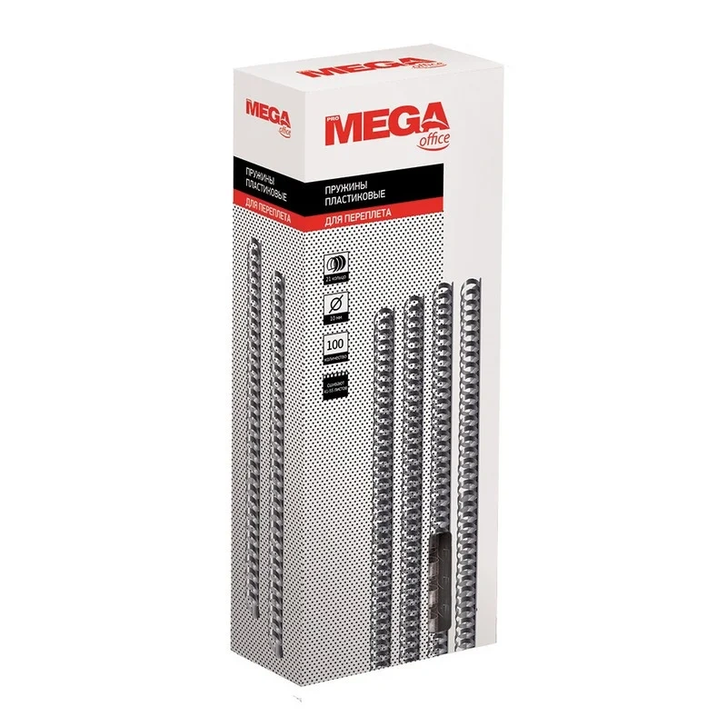 Пружины для переплета пластиковые ProMega office предназначены для сшивания до 55 листов формата А4 при помощи брошюровщика. Позволяют вынимать и добавлять листы в готовый документ. Изготовлены из прочного прозрачного пластика, состоят из 21 кольца диаметром 10 мм, шаг переплета — 3:1. Поставляются по 100 штук в упаковке.