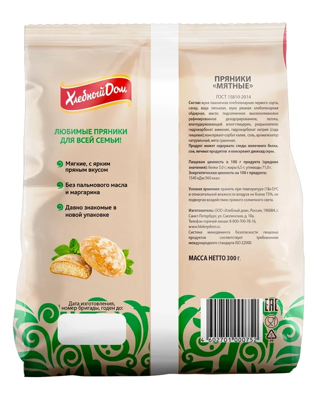 Пряники Хлебный дом мятные, 300г