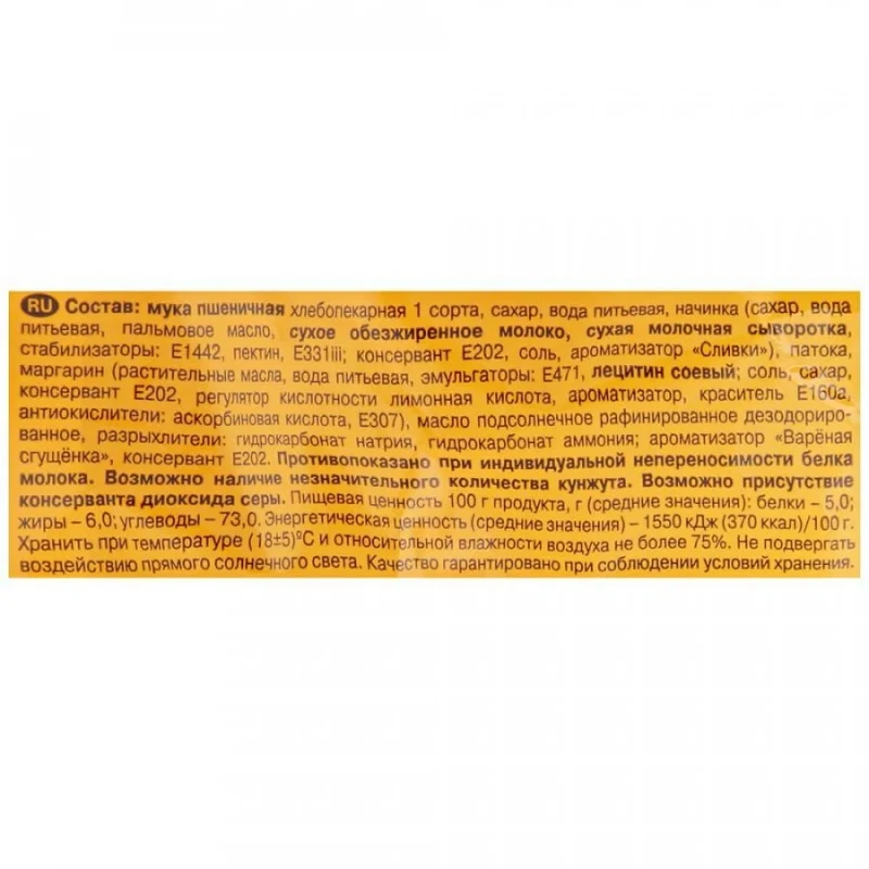 | Наполнитель | вареная сгущенка |