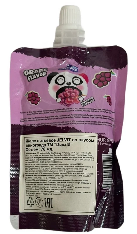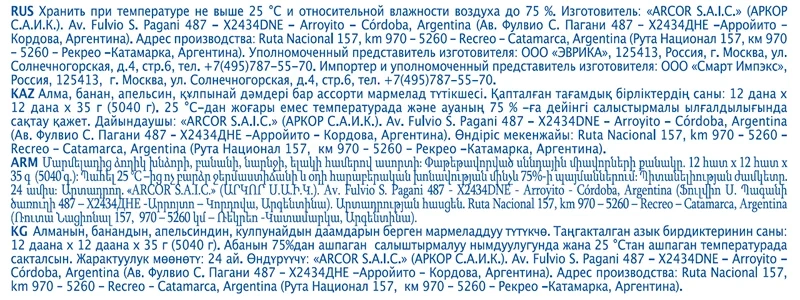 Вода, сироп фруктозы, сахар, сухое молоко (2%), сгущенное молоко, кокосовое масло, порошок яичного желтка, порошок конжака, желирующий агент: карбоксиметилцеллюлоза, геллановая камедь, каррагинан, камедь рожкового дерева, ксантановая камедь, картофельный крахмал, регулятор кислотности: тринатрия цитрат, лимонная кислота, молочная кислота, эмульгатор, пищевые добавки: сорбат калия, стабилизаторы: лактат кальция, глутамат калия, краситель: красный сорго, тартразин, красный очаровательный AC, ароматизаторы.