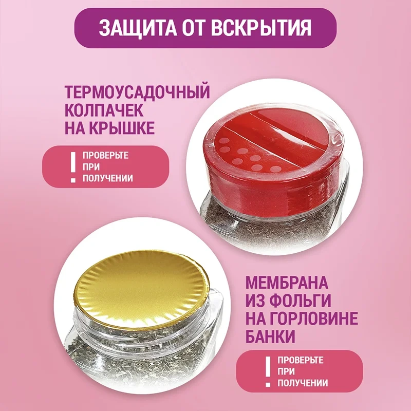 Сахарная пудра тонко молота и просеяна. Герметичная банка предохраняет пудру от влаги и слеживаемости с комкованием.