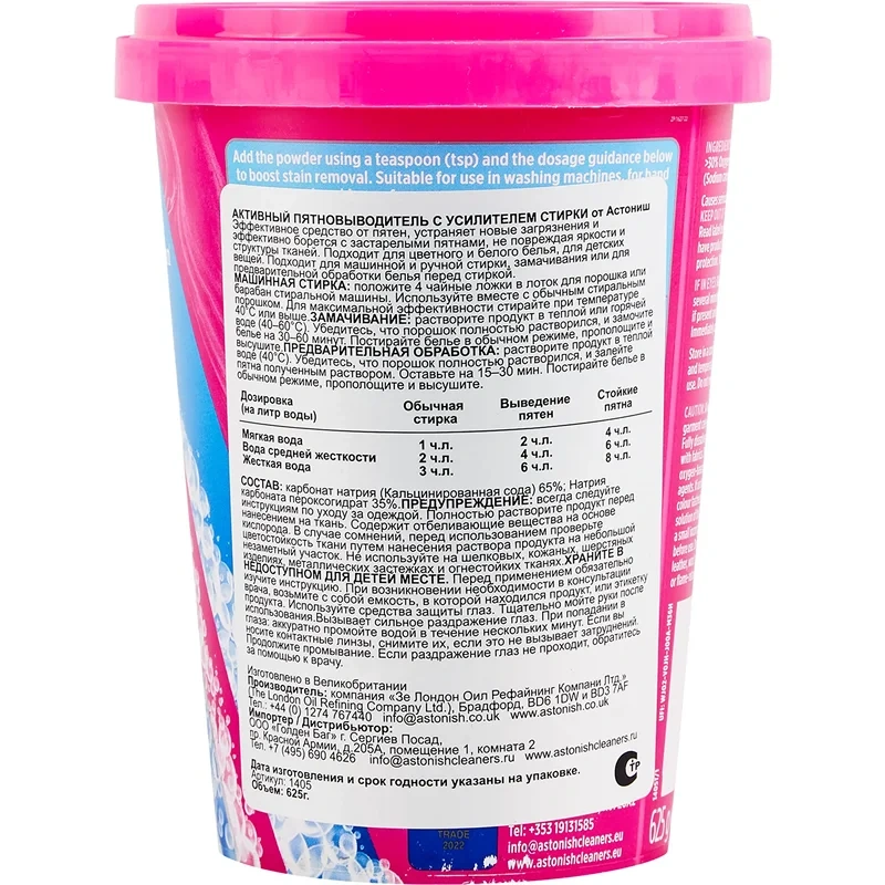 Пятновыводитель Astonish Активный с усилителем стирки, 625г
