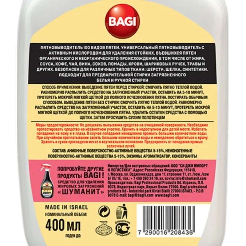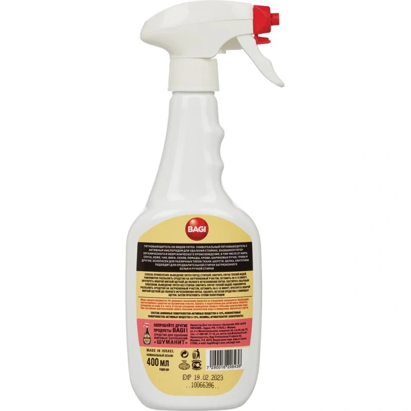Эффективное средство с активным кислородом предназначено для удаления пятен со всех видов одежды. Средство также можно использовать для удаления пятен с ковров, занавесей и мягкой мебели.