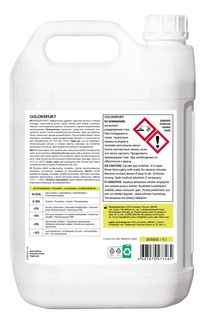 Увеличивает срок полезной службы белья за счет устранения необходимости перестирывать белье. Безопасное и готовое к применению средство. Удобно в применении - бутылка с тонким носиком для точного нанесения средства на пятно. Подходит для применения на большинстве типов белья. Дозировка - готовое к применению. pH 9.