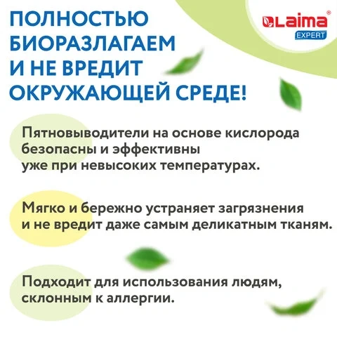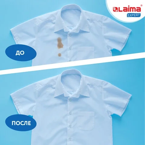 Пятновыводитель эффективно и бережно удаляет с различных видов поверхностей трудновыводимые пятна от кетчупа, вина, кофе, чая, йода, зеленки, травы, губной помады, крови, сажи, нефтепродуктов, чернил и т.п. Не изменяет цвет и не разрушает структуру очищаемых поверхностей.