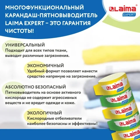 Пятновыводитель Laima Expert карандаш кислородный многофункциональный, 35г