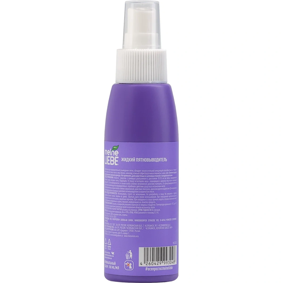 Универсальный пятновыводитель для одежды, текстиля и мебели Meine Liebe - это эффективное и экономичное чистящее средство в формате спрея, предназначенное для удаления различных сложных загрязнений. Средство выводит такие виды пятен, как трава, масло, жир, бензин, шоколад, помада, кожный себум (воротники и манжеты), вино, кофе и другие.